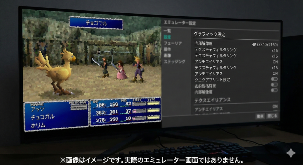 最後に、私が個人的に一番楽しみにしている使い道。それはレトロゲーム(特にPS1の『チョコボスタリオン』!)の究極プレイ環境の構築です!