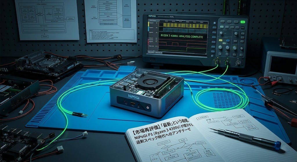 その死角とも言えるポジションに投下されたNiPoGi P1。搭載するRyzen 3 4300Uを「型落ち」と見下すのは容易いが、実務における要件定義と照らし合わせた時、この機体は極めて合理的な「最適解」として浮上してくる。